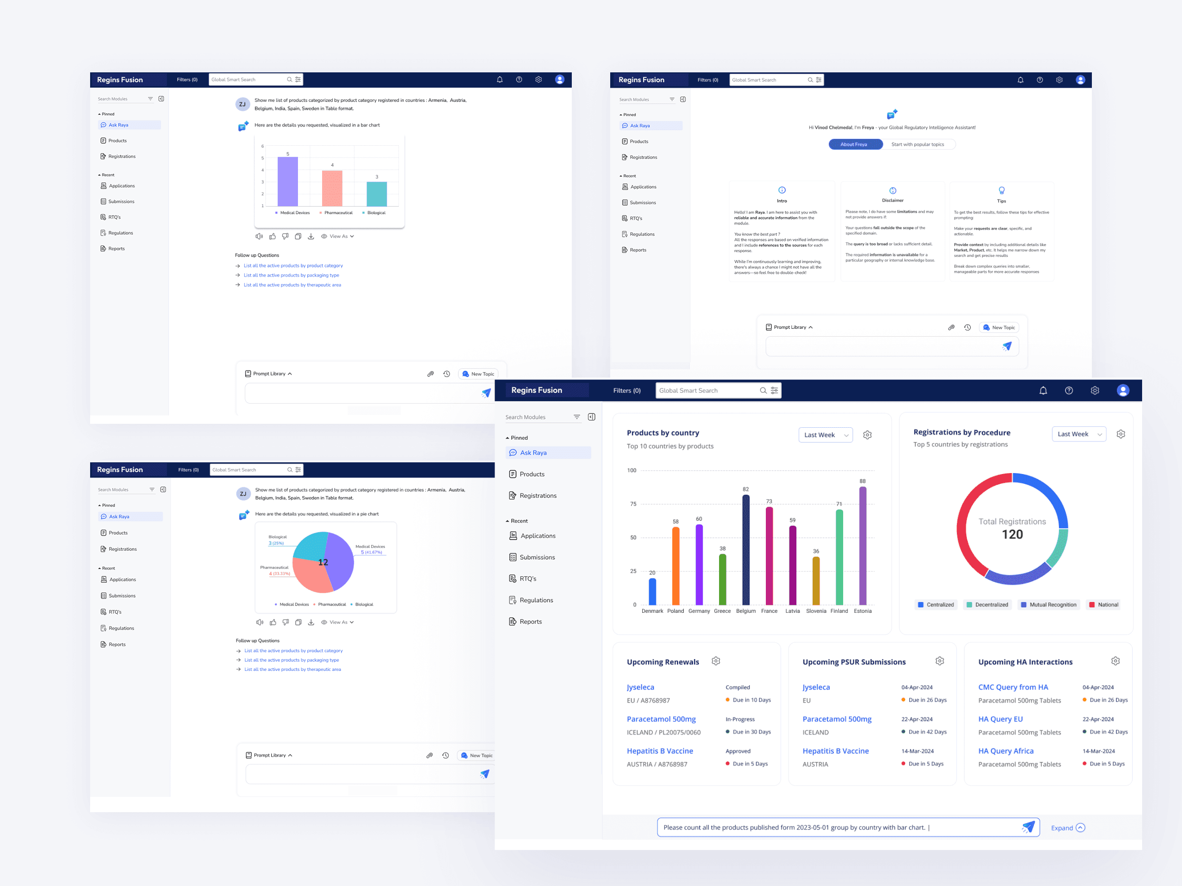 Raya is an AI-powered assistant feature of the Regins Fusion Suite application, designed to make accessing regulatory information effortless. With advanced conversational AI and powerful data visualizations, Raya delivers actionable insights in seconds, simplifying workflows and empowering smarter decision-making.